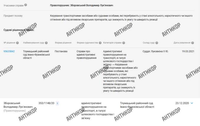 Судячи з усього родич казиношника Зборовського має схильність до алкоголю, оскільки двічі був оштрафований за п’яне водіння.