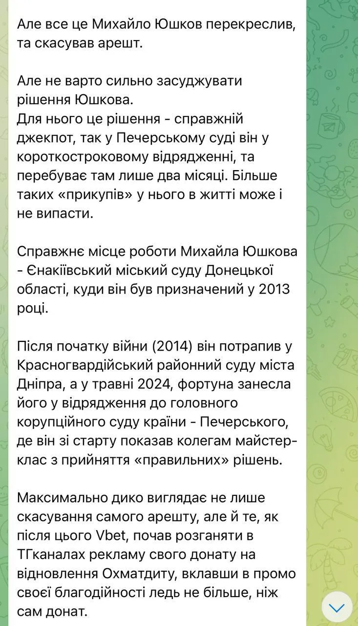 Найгучнішим епізодом стало рішення Печерського районного суду Києва в липні 2024 скасувати арешт рахунків VBet, попри те, що кримінальне провадження триває, а раніше десятки суддів і навіть Київський апеляційний суд за чотири дні до цього підтвердили законність арештів. Рішення ухвалив суддя Юшков, чим викликав критику з боку громадськості та експертів. Слід зазначити, що фінансовий моніторинг заблокував рахунки ще до судового рішення, враховуючи ті ж підозри у зв’язках компанії з російським капіталом.